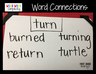 Why it works: Students practice letter substitution and connections between related words. They will naturally distinguish between real and nonsense words.